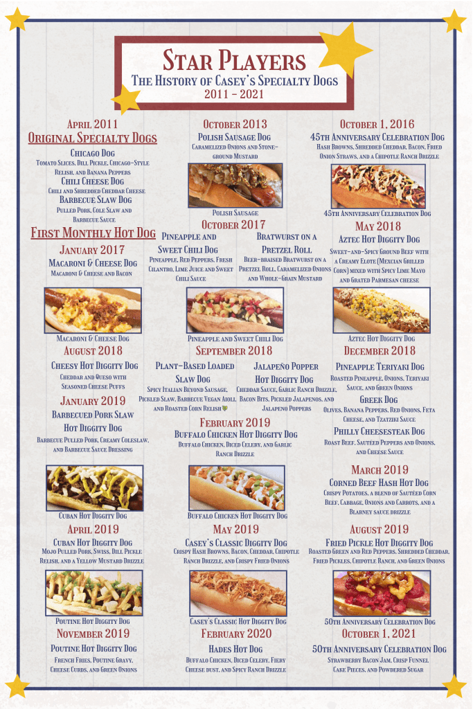 The Concept: Okay, I’ll be honest – This one was a passion project. But that doesn’t mean it’s not effective! Introducing guests to past specialty dogs heightens scarcity around new LTO and creates excitement around whether certain hot dogs will ever return. Displaying the poster near the shop will give guests something to look at as they stop to rest, educate them about the history of the shop, and act as a subtle advertisement for the restaurant. Including photos about the individual specialty dogs (especially the most interesting ones) will also connect Disney with gourmet hot dogs in guests’ minds, drawing back memories of Casey’s Corner when they encounter interesting hot dogs elsewhere.